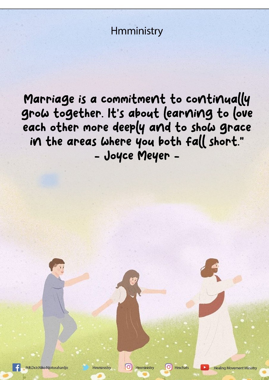 Sebagai orang percaya, kita harus selalu mengingat komitmen yang kita ucapkan di dalam janji nikah kita. Ini adalah sebuah komitmen yang mengandung ikrar (covenant) yang kudus. Sadarilah bahwa pasangan kita adalah manusia biasa yang juga memiliki keterbatasan dalam hal-hal tertentu, dan seringkali keterbatasannya itu membuatnya gagal untuk mengatasi tekanan-tekanan yang dihadapinya.